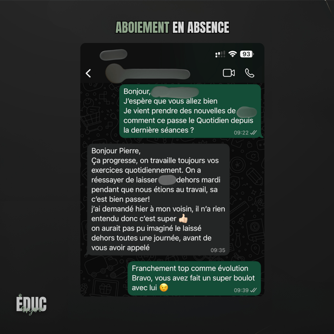 L’objectif est toujours d’adapter le suivi à ton chien et à ta situation